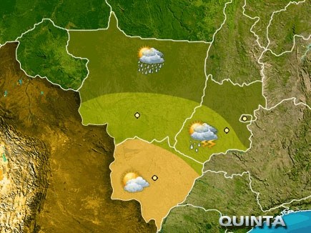 Dia de sol, calor e tempo firme em MS e no sul de MT. Chuva frequente que intercala com aberturas de sol no DF e no norte de GO e de MT. Nas demais áreas da Região, faz sol e calor com pancadas de chuva típicas de verão.