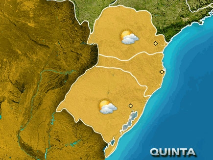 Uma grande massa de ar seco cobre a Região Sul do Brasil. Algumas localidades começam o dia com névoa, mas que logo se dissipa e o sol brilha forte em todas os estados. À tarde faz calor. Não há condições de chuva. |
