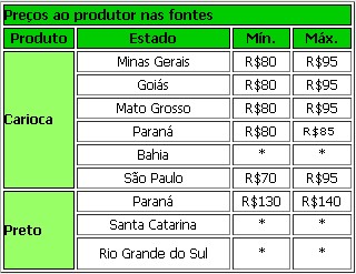 Feijão preto: No Paraná as chuvas estão fazendo com que os lotes colhidos agora tenham que passar por secador. Isto dificulta a comercialização, uma vez que, gande parte dos secadores é a lenha e deixa, com calor direto, forte cheiro de fumaça. Os produtores de feijão preto estão vendendo por R$ 125/130 no Paraná. Em relação ao carioca é um preço excelente, já que a produtividade das lavouras está sendo muito boa este ano.