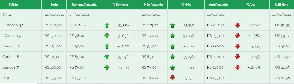 Feijão: As referências do nota 8,5 R$ 125, nota 8 R$ 115,00