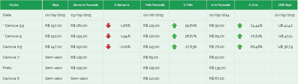Com as chuvas generalizadas em boa parte de Minas e de Goiás, os produtores se sentiram seguros em insistir em R$ 130,00/135,00 e acabaram por vender ontem. Houve um registro de Feijão 9,5, 90% de grão 12, que foi vendido por R$ 145,00, mas foi pequeno volume e não se pode dizer que isso é mercado. Na Bahia, Feijões vendidos para o Nordeste alcançaram R$ 115,00/120,00. Sabe-se que o momento de melhor venda do mês acaba de passar, mas também está muito claro que o volume que há para ser colhido é pequeno. As lavouras no Mato Grosso vêm reportando, todos os dias, baixa produtividade. Somando todos os fatos, temos um mercado com “pouco” Feijão, ainda que a venda no varejo não esteja normal. A gravidade da situação econômica do país acaba por afetar a todos. Nunca se viu tamanho pessimismo e isto contamina todo o mercado.