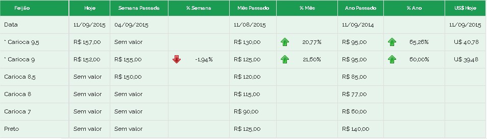 Preços feijão Brás 11/09