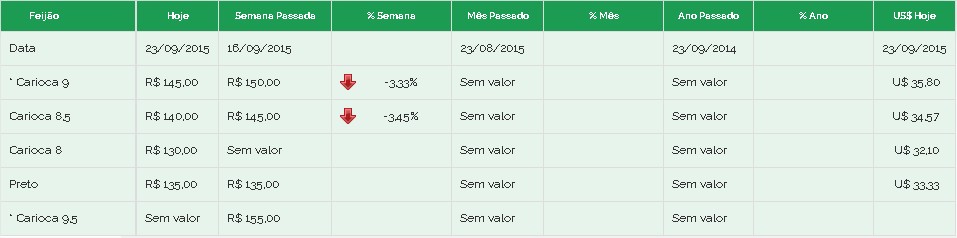 Preços feijão Brás 23/09
