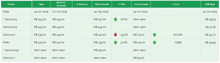 Com oferta de 12.000 sacas nesta madrugada e com sobras de 6.500 sacas, no Brás, em São Paulo, sem novas entradas de Feijões nota 9 acima e de nota 7, os preços ficaram estáveis.