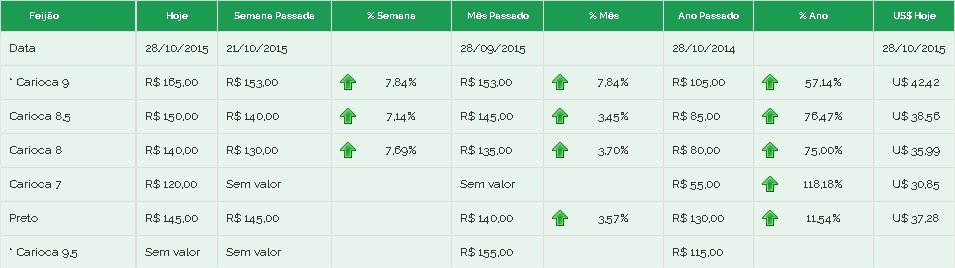 Feijão Brás preços 28/10