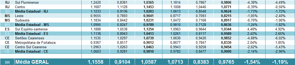 Preços em estados que não estão incluídos na “média nacional” – RJ, MS, ES e CE