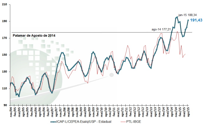 ICAP-L/Cepea - Índice de Captação de Leite – AGOSTO/15. (Base 100=Junho/2004)