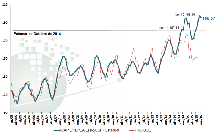 Gráfico 1: ICAP-L/Cepea - Índice de Captação de Leite – OUTUBRO/15. (Base 100=Junho/2004)