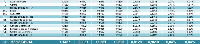 Preços em estados que não estão incluídos na “média Brasil” – RJ, MS, ES e CE