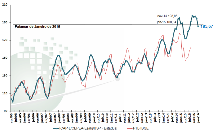 ICAP-L/Cepea - Índice de Captação de Leite - JANEIRO/16. (Base 100=Junho/2004)