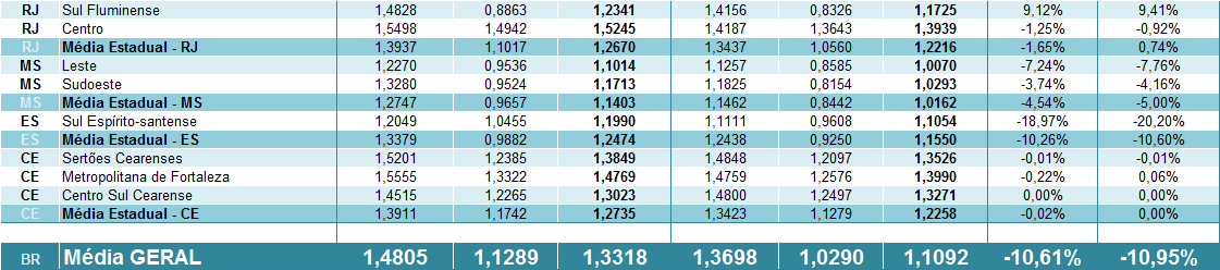 Tabela 2. Preços em estados que não estão incluídos na “média Brasil” – RJ, MS, ES e CE