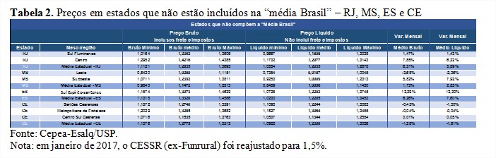 De abril para maio, os preços subiram em todos os estados que compõem a “média Brasil” do Cepea, com a alta mais intensa, de 10,34%, sendo verificada no Rio Grande do Sul, seguido pela Bahia (8,56%) e Santa Catarina (8,38%).