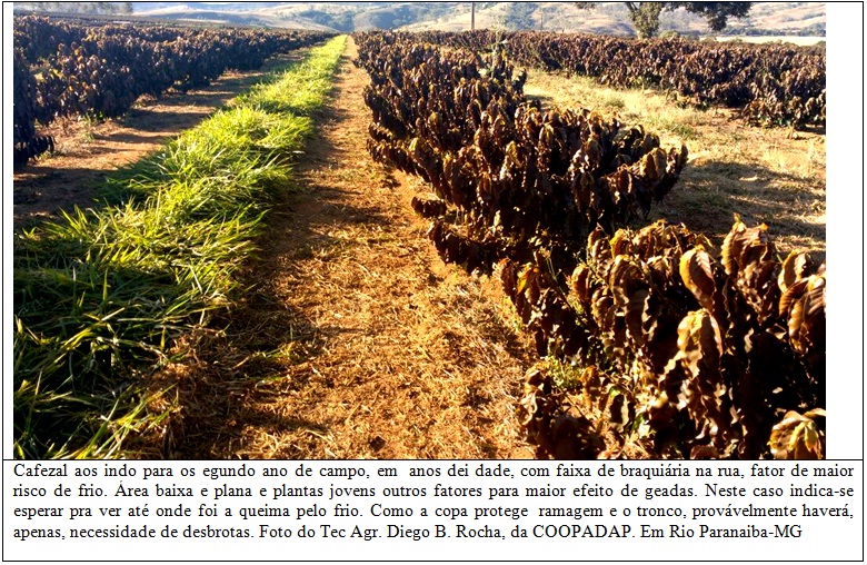 Nós, talvez por sermos mais antigos, e, por isso, já termos passado pelo dissabor de verificar os efeitos de diversas geadas no passado, temos recebido muitas consultas, sobre o que fazer com as lavouras de café que foram, recentemente, atingidas por geadas.