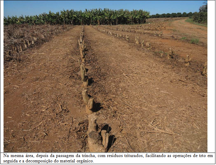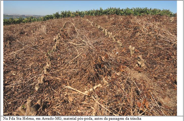 Nas podas de esqueletamento, recepa ou decote, a passagem da trincha, uma ou duas vezes, vai depender da grossura do material cortado dos cafeeiros e depositado nas ruas da lavoura. Caso seja muito grosso, deve-se fazer uma primeira passada, com a trincha mais alta do solo e, depois, uma segunda, mais baixa, pra terminar o serviço.