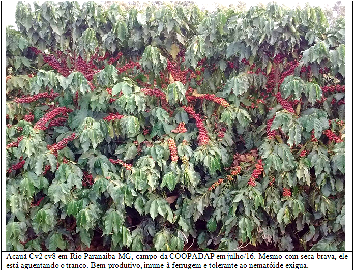 Além disso, as cultivares desenvolvidas para resistência possuem outras características importantes para sua indicação, destacando-se - a sua boa capacidade produtiva, semelhante ou superior aos padrões susceptíveis(Catuai e MN), o bom vigor das plantas, que garante sua recuperação após stress por carga e a produção de frutos de boa qualidade.
