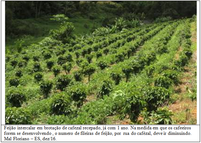 A retomada de plantios de feijão, em maiores áreas, nas propriedades cafeeiras, é muito adequada, pois, com a ampliação que vem ocorrendo no plantio de café e com maior uso das podas, extensas áreas de cafézais estão disponíveis, com espaço livre nas ruas da lavoura. Ali, cultivar feijão é muito melhor do que cultivar mato. As prioridades para o cultivo intercalar são, portanto, em cafezais na fase de formação ou no pós-poda drástica (recepa/esqueletamento), ou mesmo em lavouras que, por outras razões (granizo, geada, estiagem etc) se encontram em recuperação..