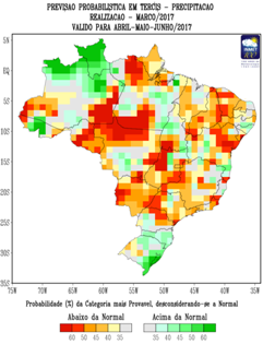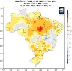 Figura 4 – Previsão sazonal probabilística para o trimestre abril, maio e junho de 2017. Fonte INMET.