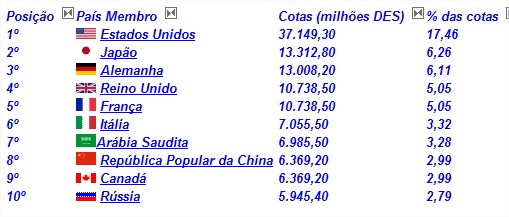 O dinheiro do FMI vem dos 185 países-membros, entre os quais o Brasil, por isso, o poder de voto depende da contribuição de cada país.