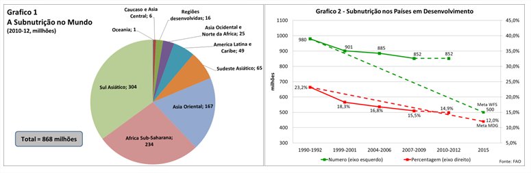 Neste documento a FAO reconhece que ainda temos 870 milhões de pessoas sofrendo de subnutrição crônica. Isto equivale a escandalosos 12,5% da população Mundial. Em outras palavras, 1 a cada 8 habitantes deste planeta passa fome!