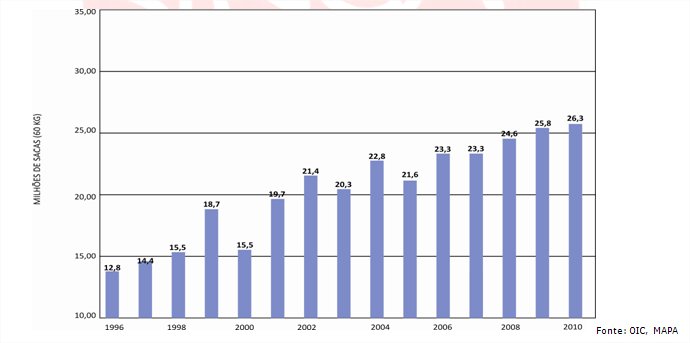 Nos últimos 15 (quinze) anos, exportamos, por volta, 300 milhões de sacas de café arábica, (conforme gráfico abaixo), perdendo US$ 40/saca de café (em média) ou seja jogamos fora ao redor de 12 bilhões de dólares. É muito dinheiro. Valor esse que deveria estar empregado nos municípios produtores extirpando a pobreza e melhorando o I.D.H. Enquanto isso os países importadores, normalmente países de primeiro mundo, ganham verdadeiras fortunas.
