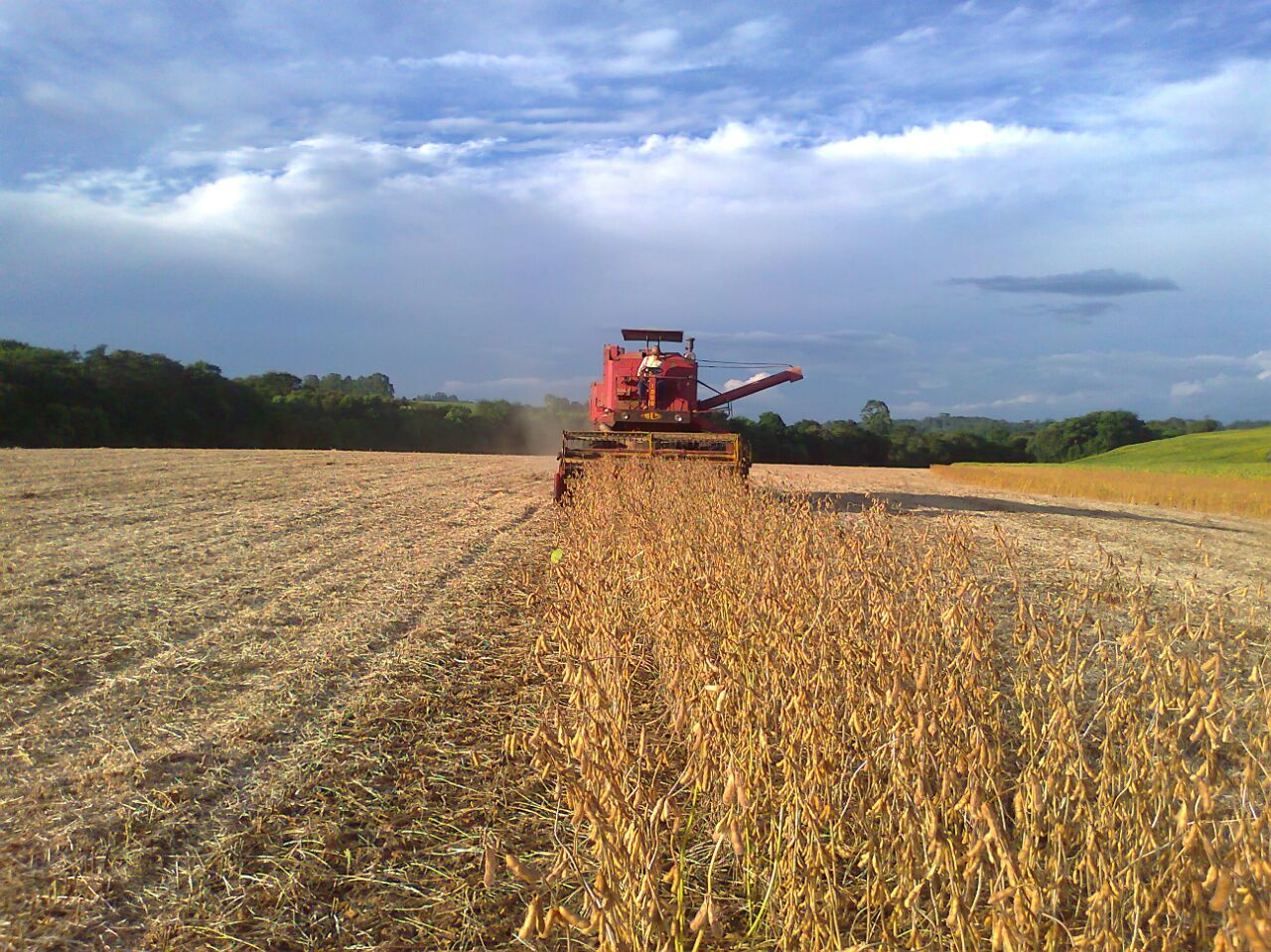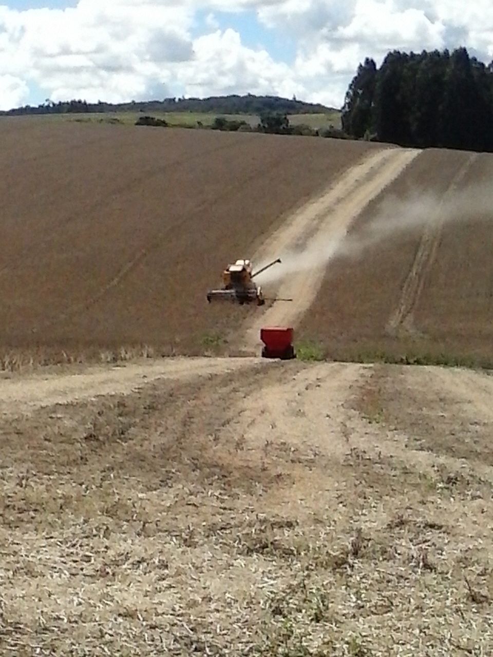 Colheita de Soja, em Guabiju (RS).Foto enviada pelo produtor Leonardo Biotto.