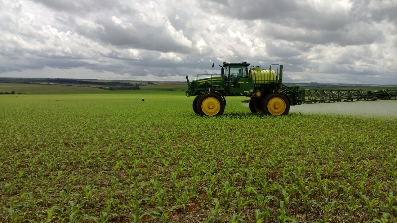 Tratamento de herbicida na lavoura de milho safrinha em Cristalina (GO), na Fazenda Santa Luzia da Família Bonato.