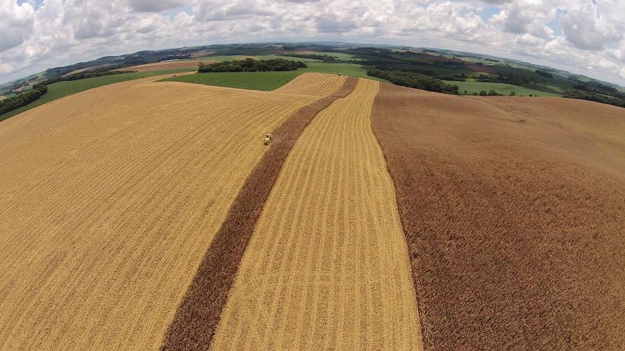 Colheita de soja em Santa Bárbara do Sul (RS), dos produtores Fernando e Rogério Costella