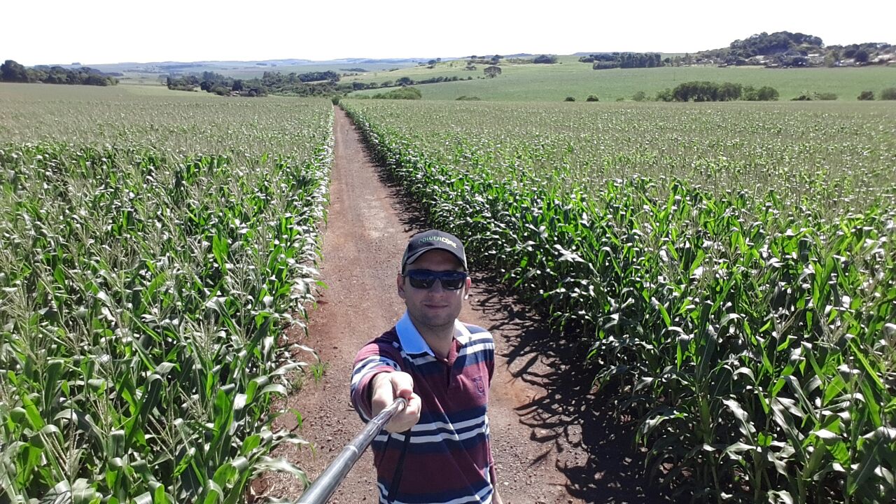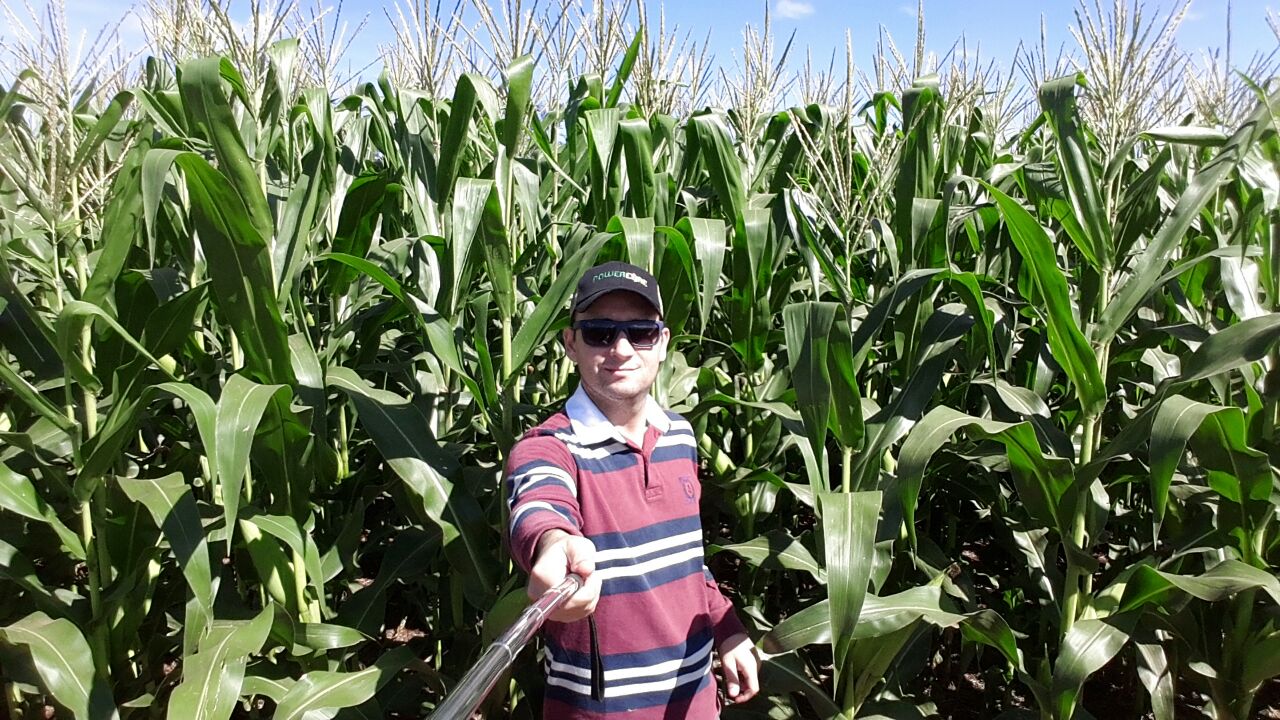 Engenheiro Agrônomo Rodolfo Junqueira Pereira no milho safrinha em Carmo de Minas (MG). Enviado por Vlamir Leggieri