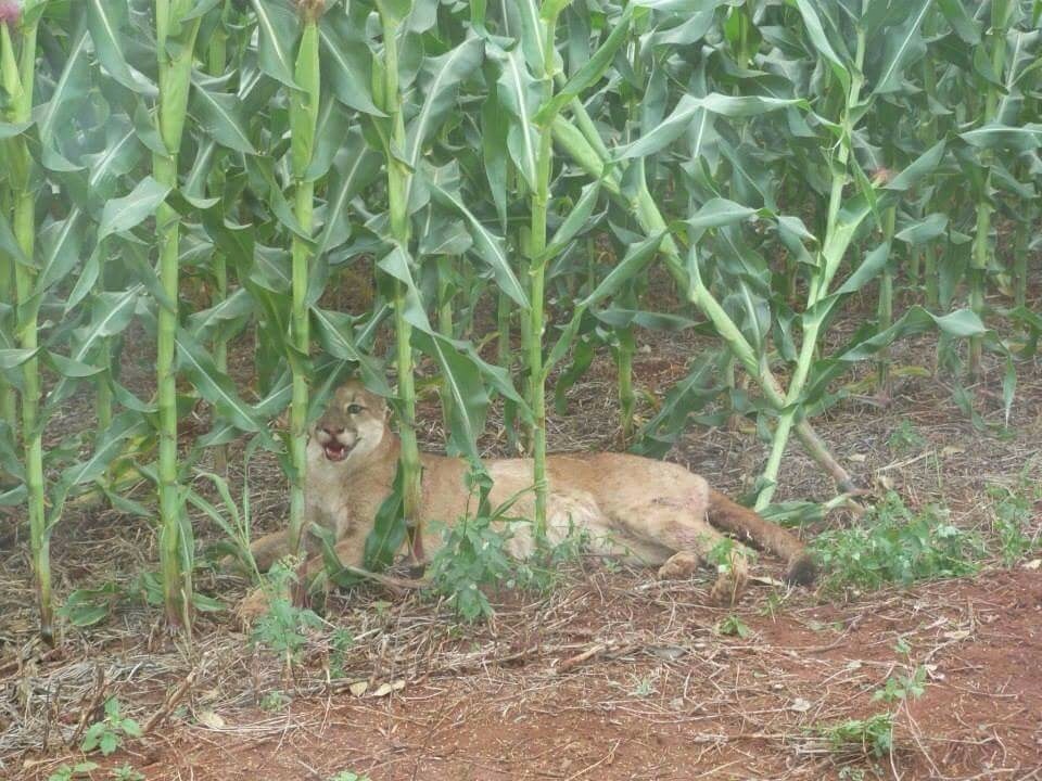 Onça parda no milharal na Fazenda Vitória em Uberaba (MG), do produtor José Humberto Vilela. Envio de Vanessa Garatti Vilela