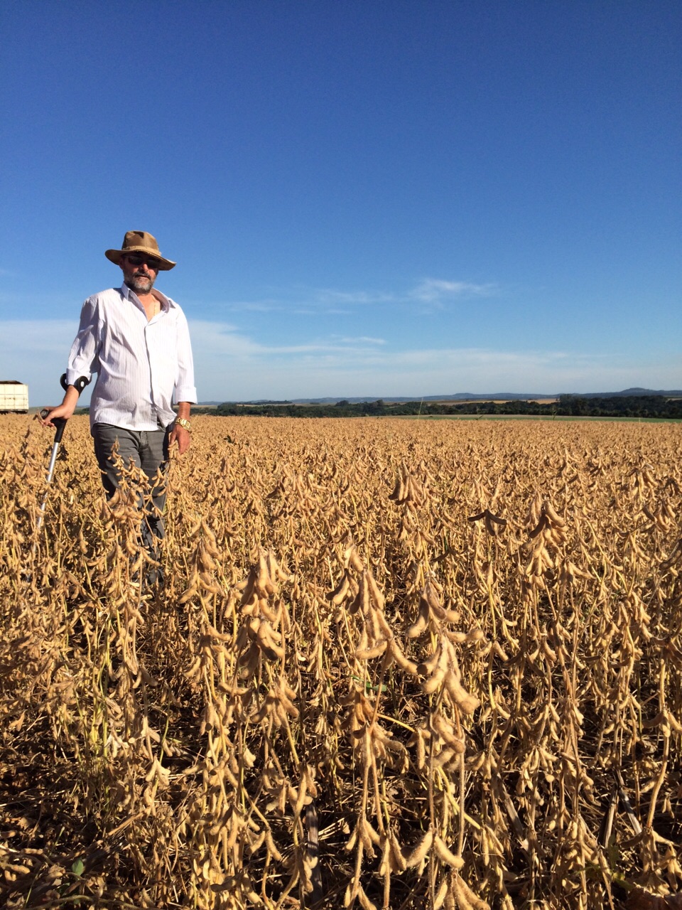Flávio A. Irber na lavoura de soja safrinha em Pranchita (PR)