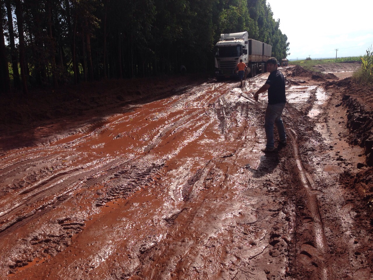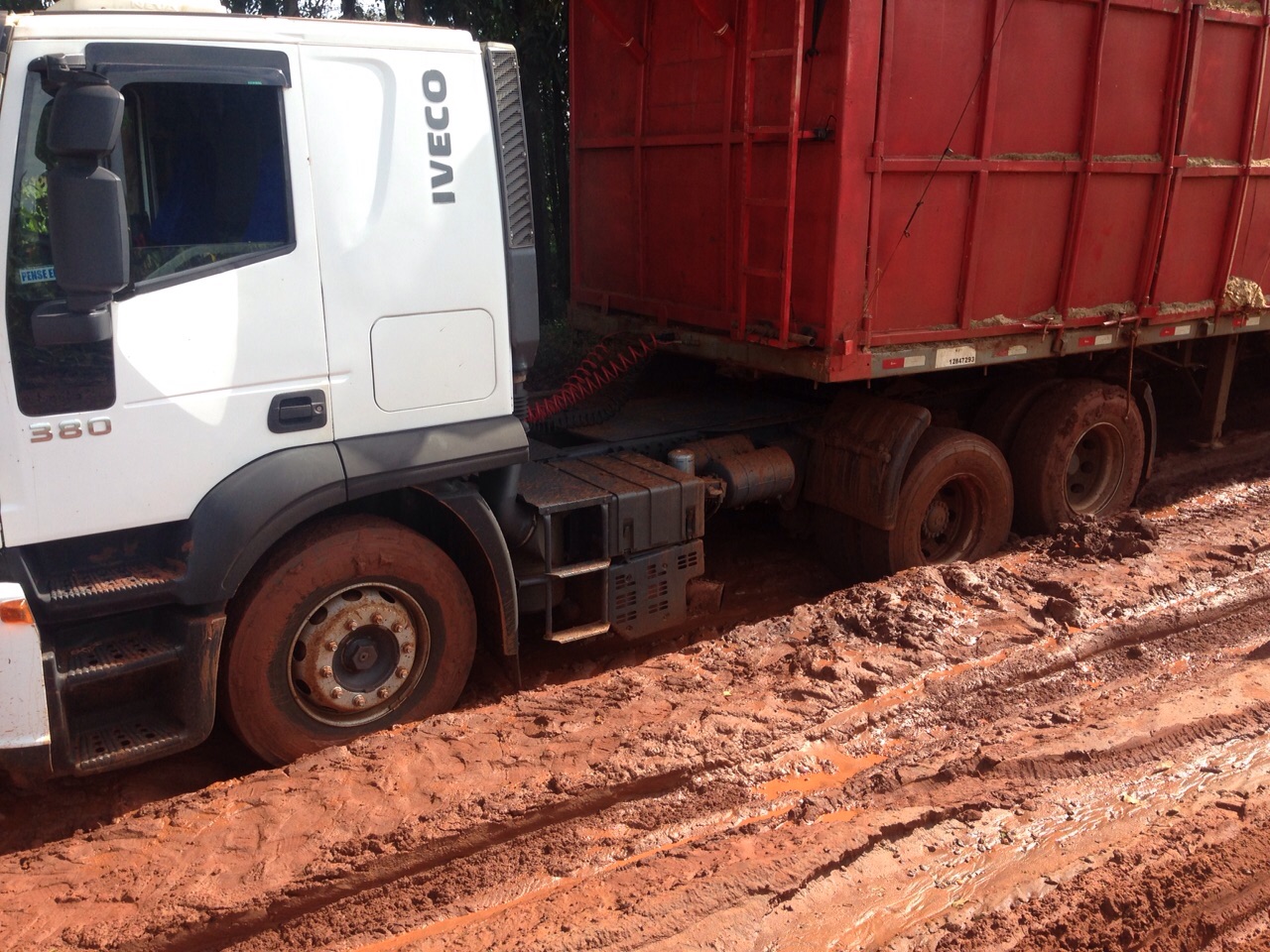 Caminhões atolados na Rod. MS 156, km 40 na região de Dourados (MS). Envio de Renato Ferreira