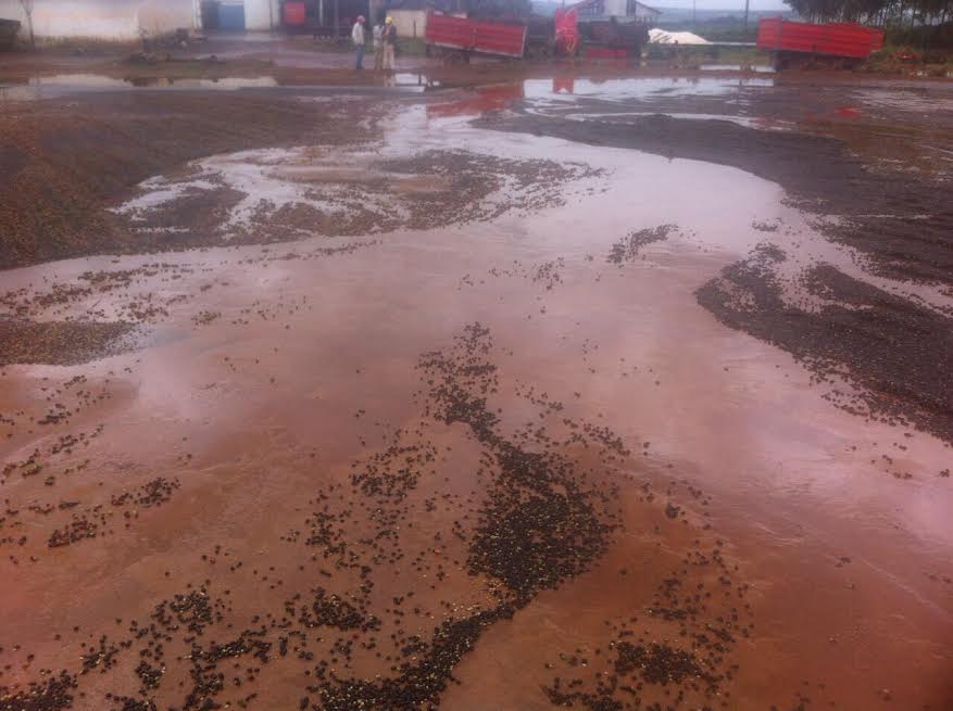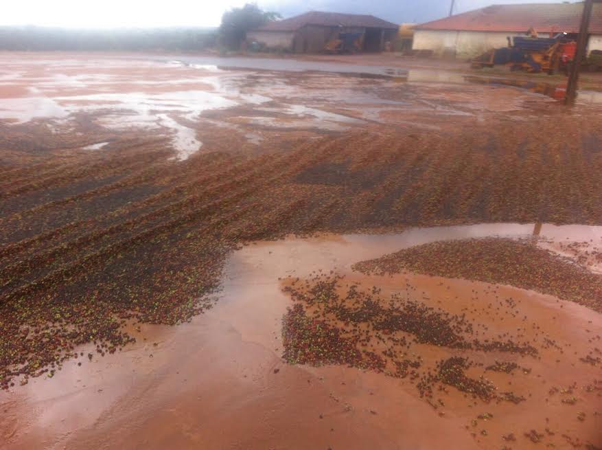 Chuvas no terreiro de café na região de Franca (SP). Envio de Isnard Batista