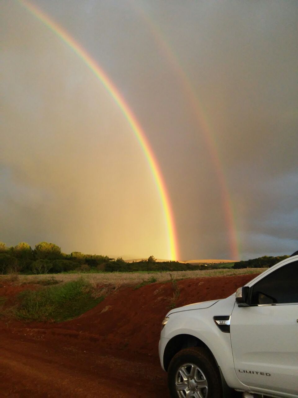 Arco-íris em fim de tarde entre os municípios de Ipuaçu e Abelardo Luz (SC). Envio de Guido Neuls