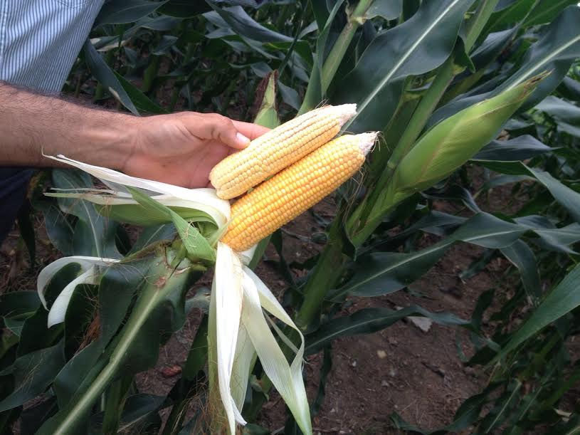 Família Boatto visitando lavoura de milho em Floraí (PR)
