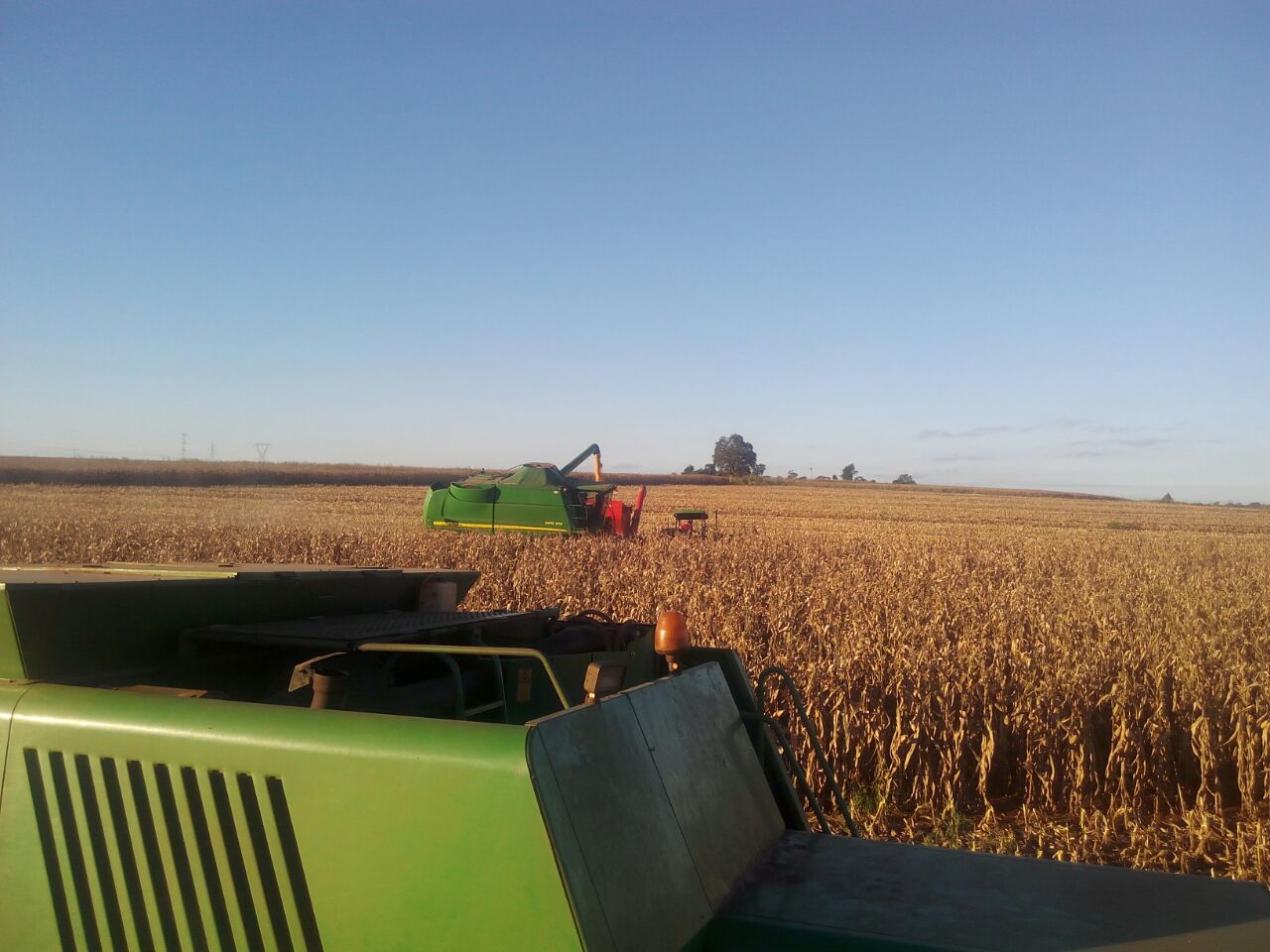 Depois de uma semana de chuva, produtores voltar a colher o milho safrinha em Santa Terezinha do Itaipu (PR). Envio de Ademir Fontana