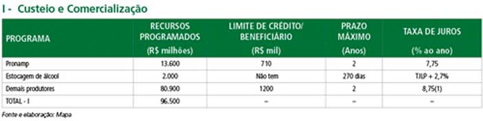 Dentro dos empréstimos com taxas de juros fixadas, a maior parte dos recursos de custeio será oferecida a 8,75 por cento ao ano. A taxa vale para a chamada agricultura empresarial.
