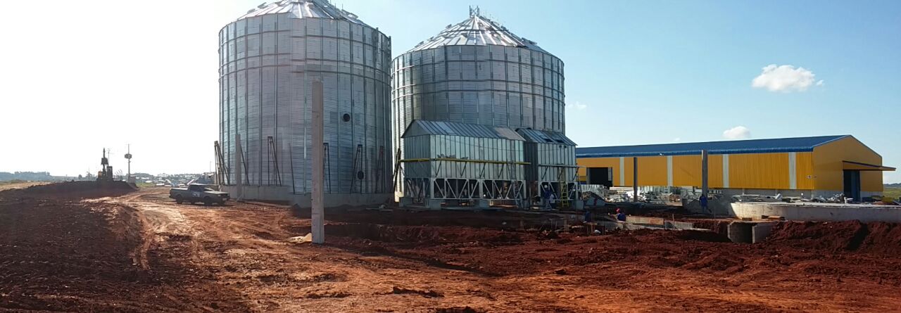 Flavio Irber e o produtor Loris Cagol na construção dos silos. Região de Pranchita (PR)