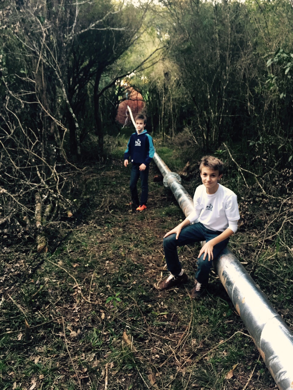 Canais e adutoras para irrigação em Passo Fundo (RS). Na foto, Lucas e Arthur Waihrich. Envio de Marcelo Waihrich