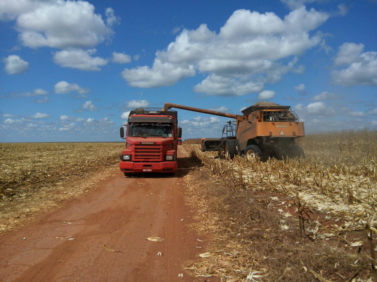 Colheita de milho safrinha em Sapezal (MT). Imagem de Daniel Borba