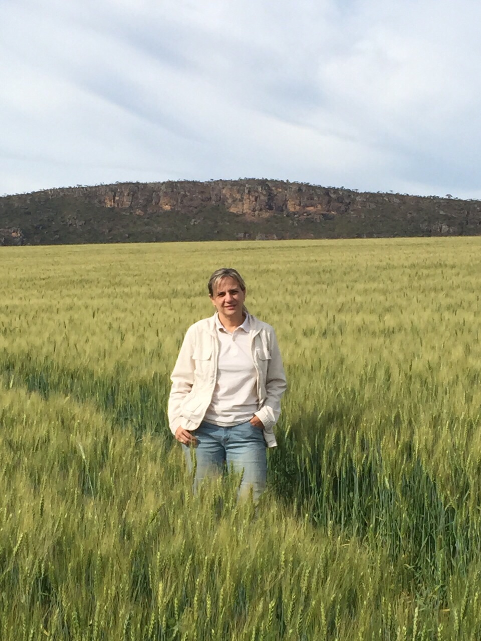Helga França Paiva na lavoura de trigo em Ibiá (MG)
