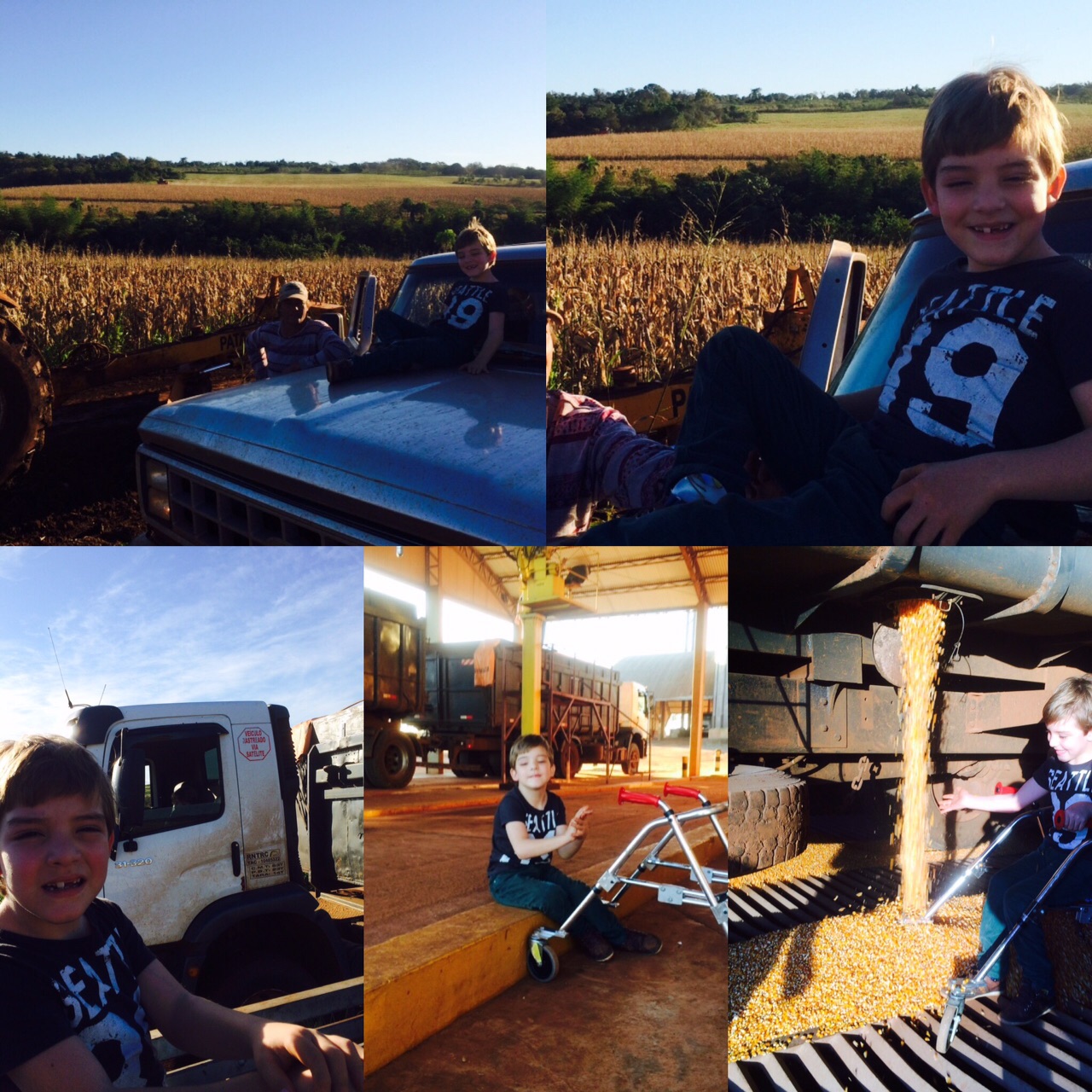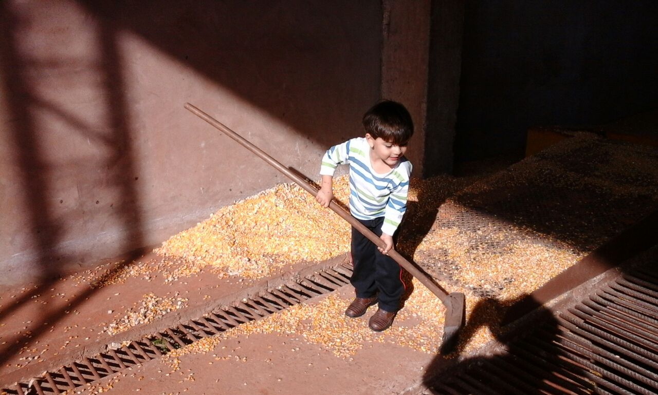 Tobby ajudando a limpar a colheitadeira depois da colheita em Coqueiros do Sul (RS). Enviado por Delmar Volmir Scherer