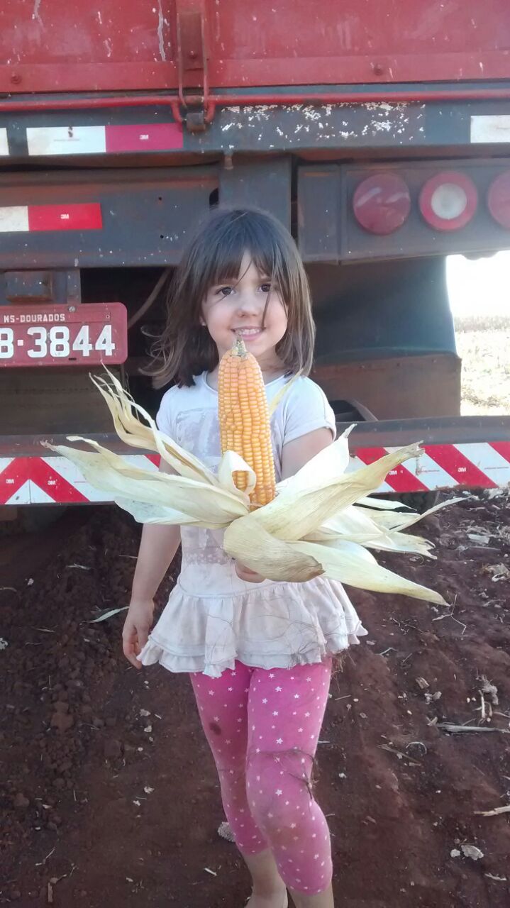Carolina Trein ajudando na colheita do milho safrinha em Laguna Carapã (MS)
