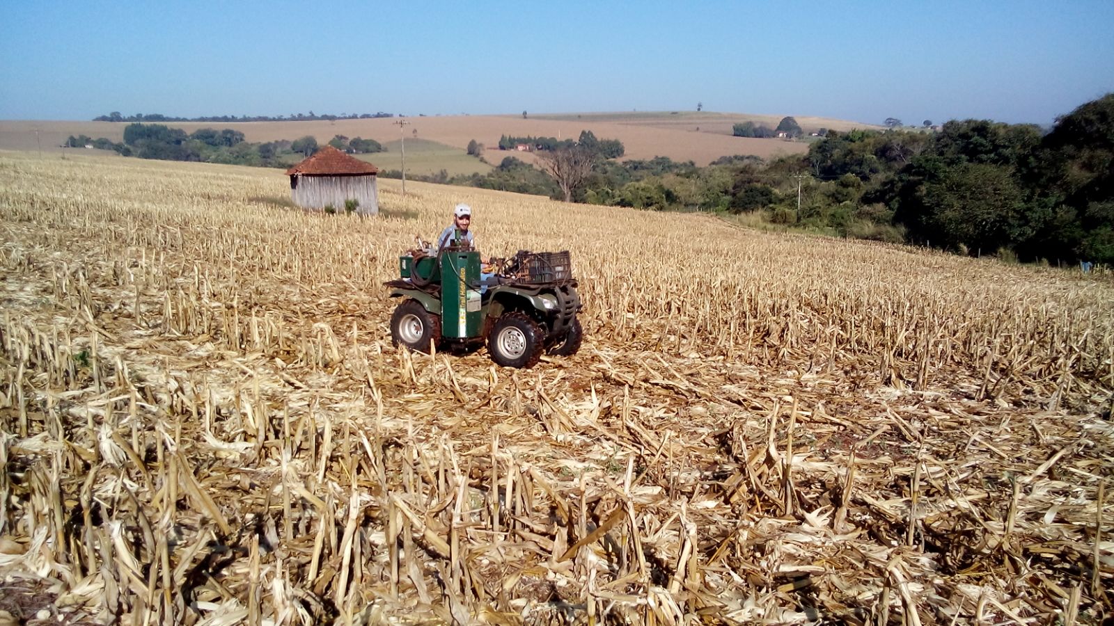 Passando rolo faca na resteva de milho em Nova Toledo (PY), do produtor Nilson Placio Kohler