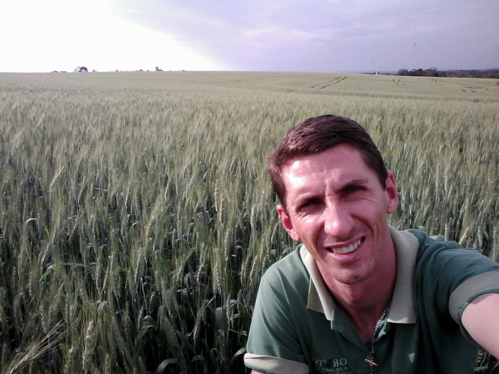 Daniel Shinji na lavoura de trigo da vovó Irene em São Jorge do Ivaí (PR). Enviado pelo Engenheiro Agrônomo Daniel Rodrigues Vansan