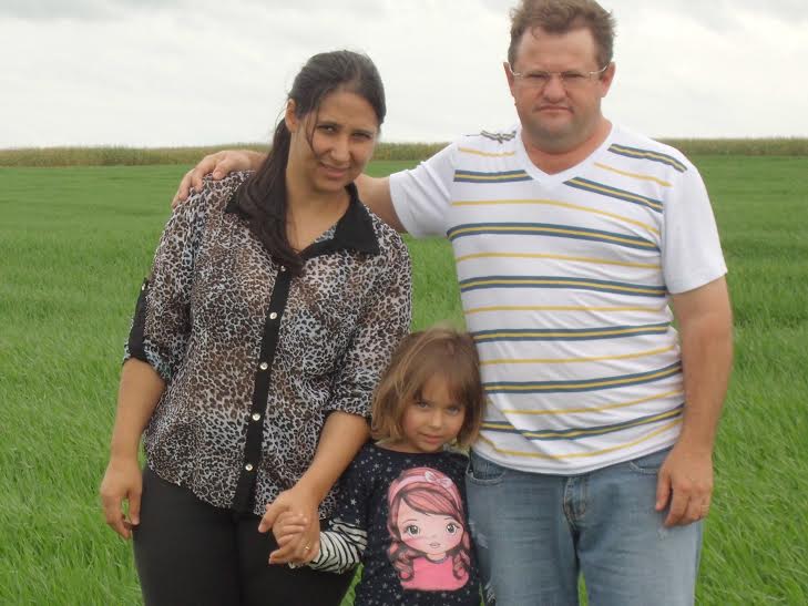 Amauri, Miriam e a pequena Manuela na lavoura de trigo em Nova Cantu (PR)