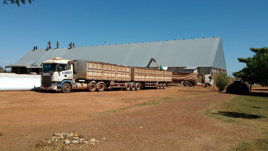 Término do carregamento de soja em silos bags no armazém do Grupo Vale do Verde em Terra Nova do Norte (MT). Envio de Darian Mecca