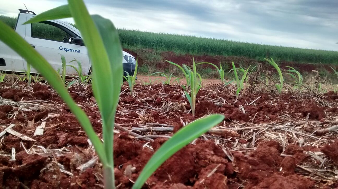 Milho safrinha na cidade de Ribeirão do Sul (SP). Imagem do Técnico Agrícola Matheus Pires