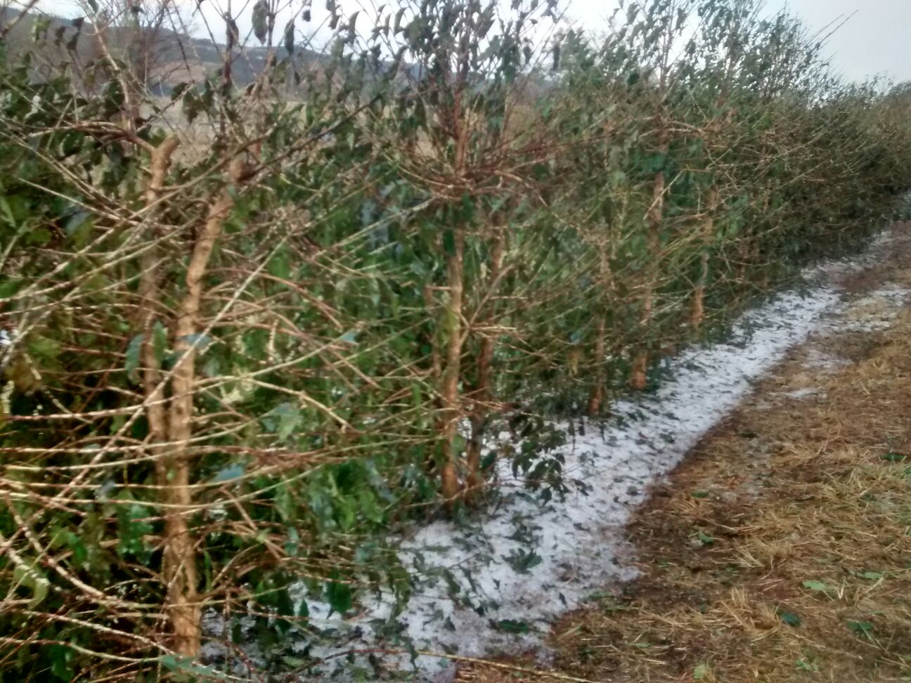 Lavouras de café, após chuva de granizo no sul de Minas Gerais. Enviado por Alysson Fagundes, da Procafé