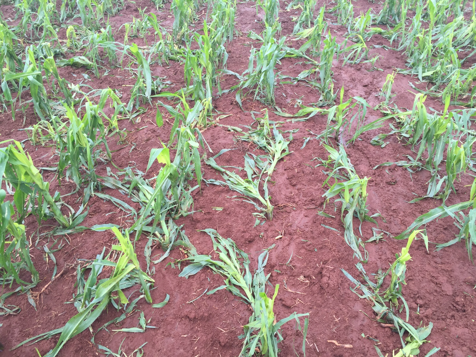 Lavoura de milho na região de Jóia (RS), após chuvas de granizo. Enviado por Rita De Baco, da De Baco Corretora