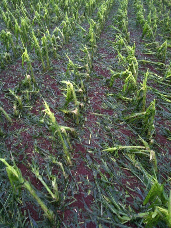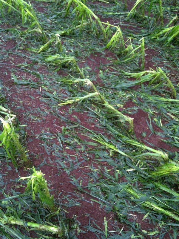 Chuva de pedra danifica as lavouras de milho em Taquaruçu do Sul (RS). Envio de Anderson Moresco